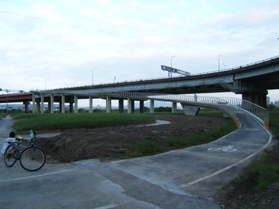 接下來沿著自行車道騎,會經過新海橋,台鐵、高鐵專用橋,接下來就是浮州橋了