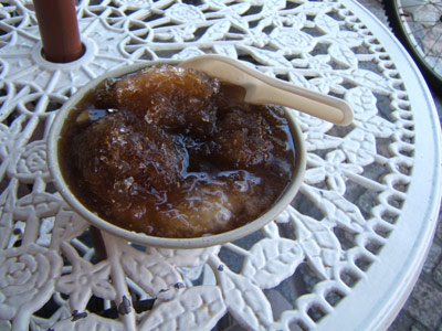 他們有分黑豆花和白豆花,所以我就試試黑豆花,豆花還有點熱熱的加上冰涼挫冰黑糖水
